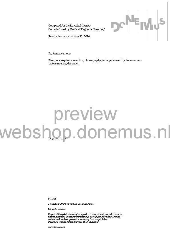 | Commissioned by | Festival ‘Dag in de Branding’, The Composition Department and Ruysdael Quartet |