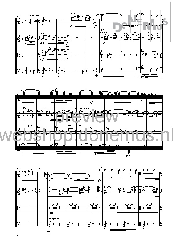 Initially, the rhythm—set in a regular pulse—is the central element. Then, the first violin part takes on a more melodic character, and gradually the other instruments shift from mere accompaniment to counterpoint. The rhythms become increasingly irregular and surprising, and the number of dynamic markings grows, causing the march to fade more and more into the background.